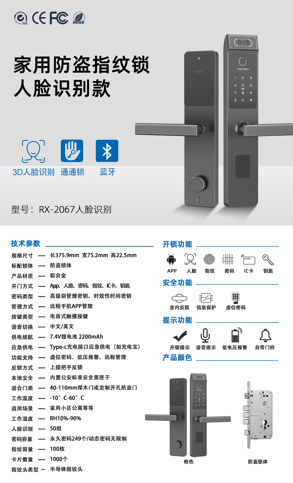 通通版人脸识别指纹锁